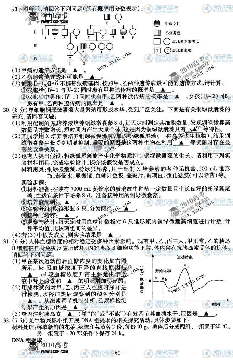 2010年江苏高考生物试题卷答案