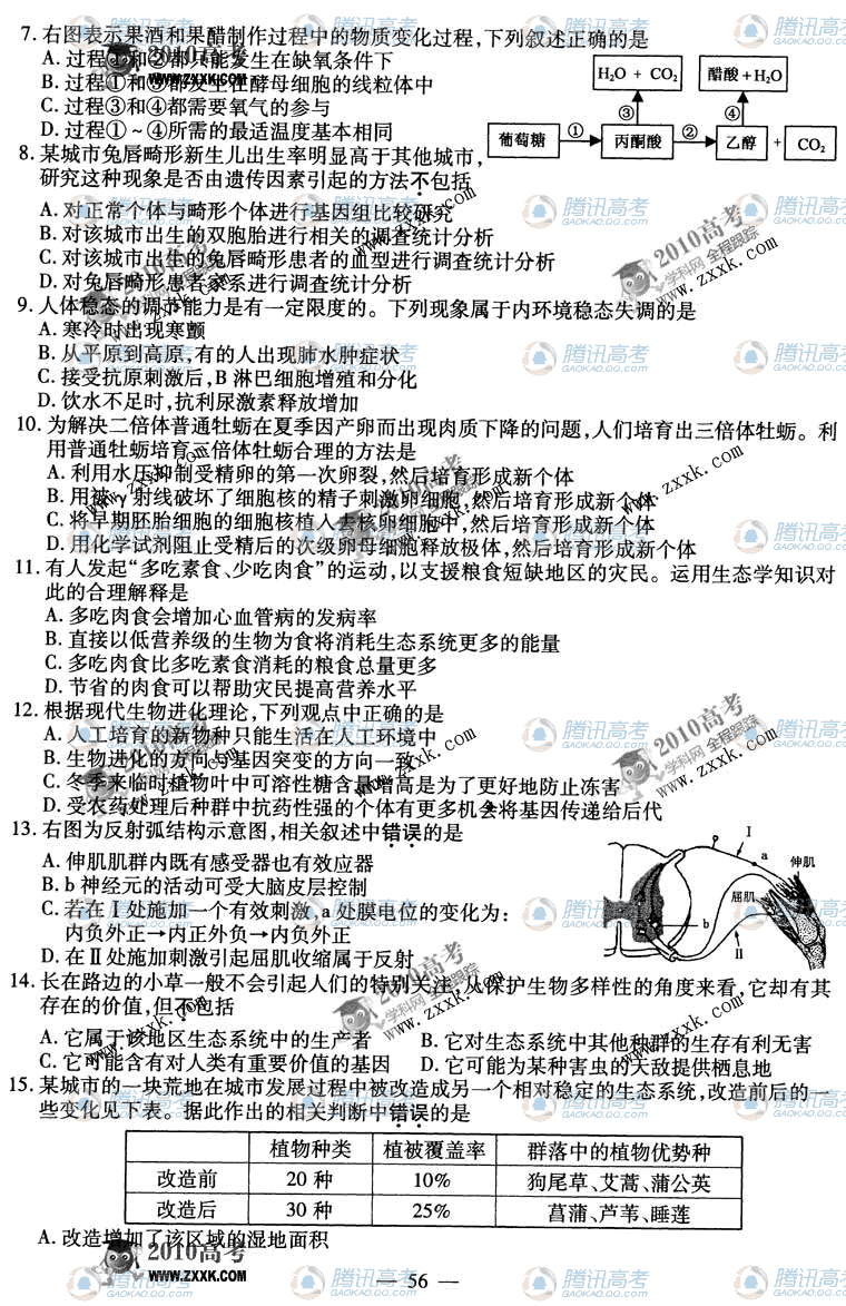 2010年江苏高考生物试题卷答案