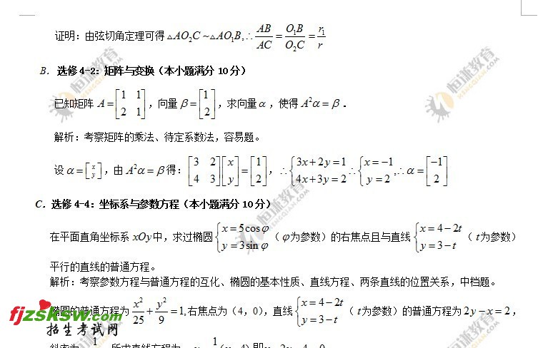 2011年江苏高考数学卷 卷II卷考题解析