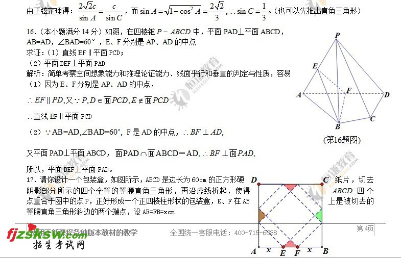 2011年江苏高考数学卷 卷II卷考题解析