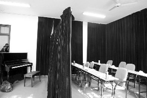 音乐统考面试现场拉起了帘子 记者谢静娴 摄