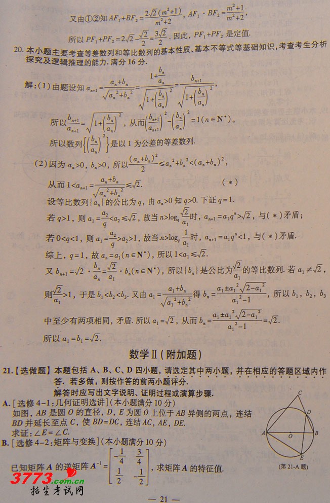 2012年江苏高考数学试卷及参考答案