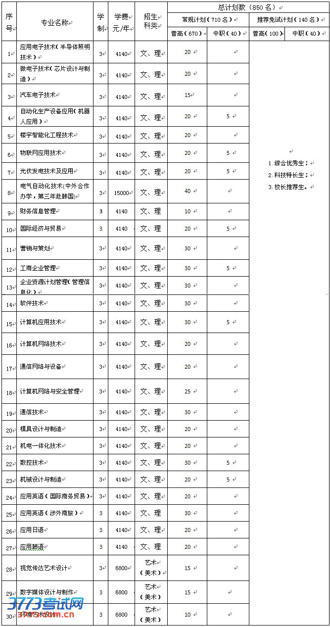 说明:电气自动化技术(中韩合作)为中外合作办学的专业,进校后若需调整专业只能在中外合作办学的其它专业中选取。