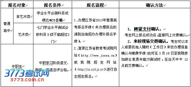 ②通过常州信息职业技术学院招生信息网(http://zs.ccit.js.cn)报名+网银(或现场)交费确认;