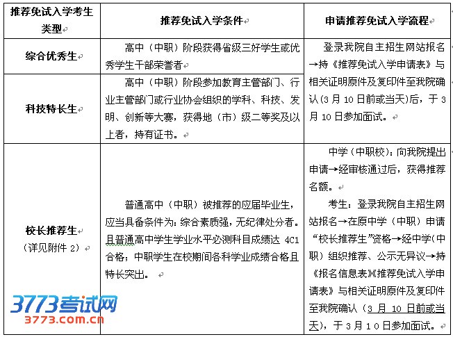 4.报名参加“校长推荐、科技特长、综合优秀”免试入学的考生,需要参加我院统一组织的面试。