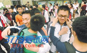 图为昨天下午高考结束后,同学们相互拥抱。本报记者余萍摄