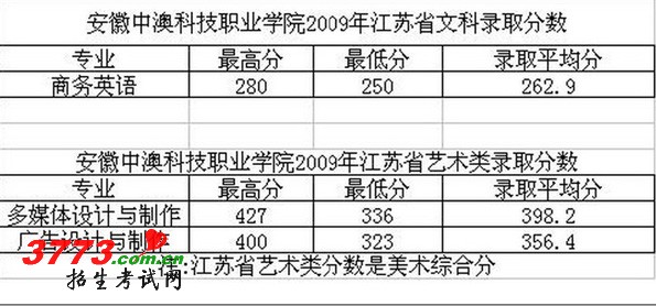 安徽中澳科技职业学院2008年分省分专业招生计划