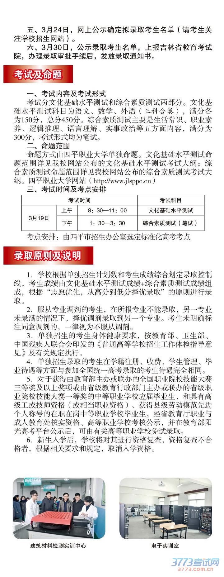 2016吉林电子信息职业技术学院单独招生计划(高中)