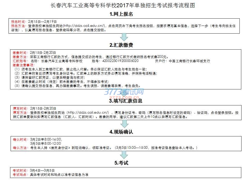 长春汽车工业高等专科学校2017年单独招生考试报考流程
