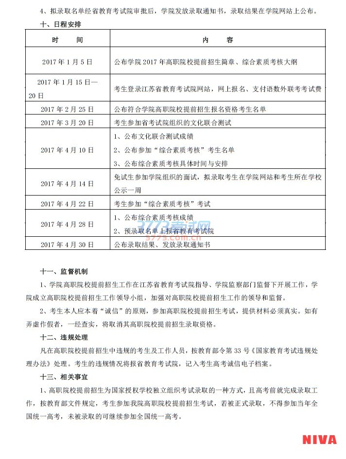 南京视觉艺术职业学院2017年高职院校提前招生简章