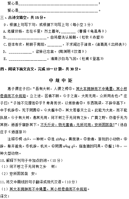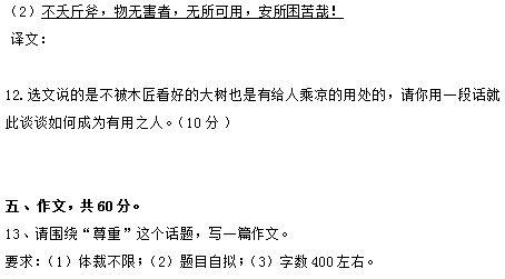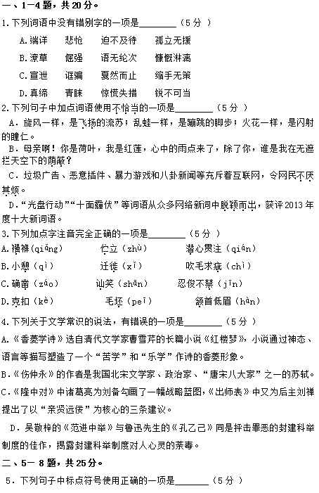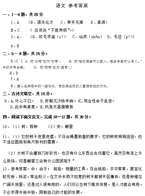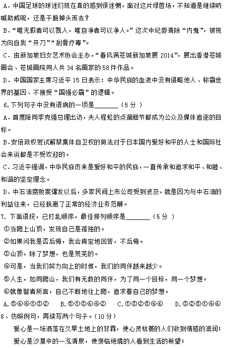 2016九江职业技术学院单独招生综合素质与能力样卷及答案