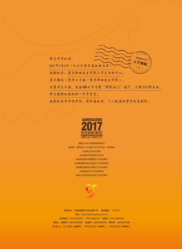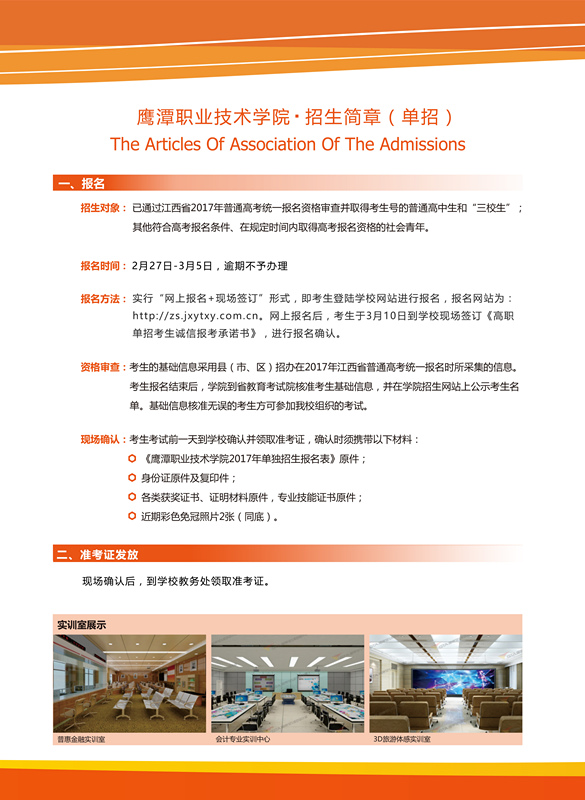 2017年鹰潭职业技术学院单独招生报名即将开始,考生可于2月27日至3月5日登录我官方网站进行在线报名。报名入口:http://www.zs.jxytxy.com.cn/Enroll/SeparateIndex/70?previewColumnId=77&siteId=1。