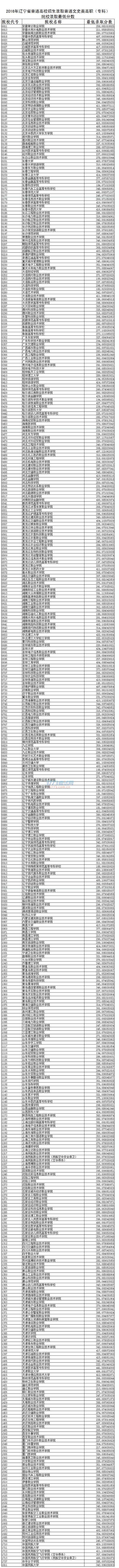 2016辽宁文科专科院校录取分数线