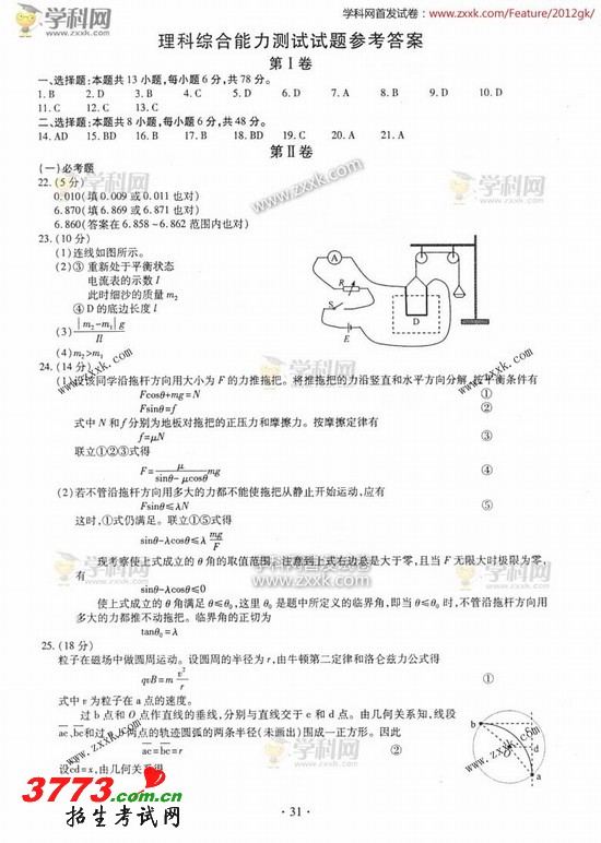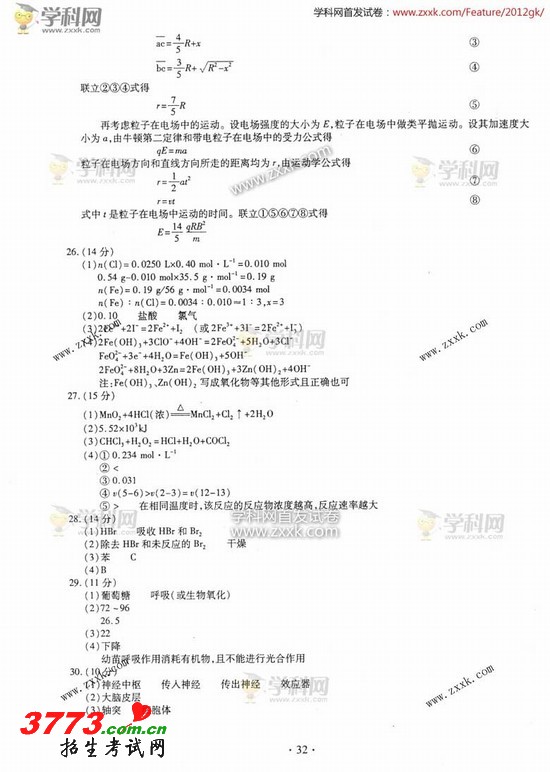 2012年辽宁高校招生考试新课标全国卷理综(word)