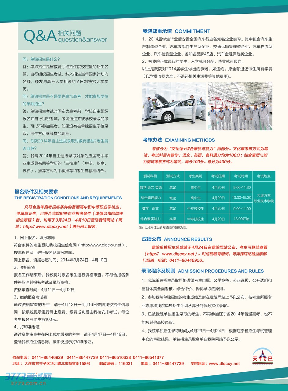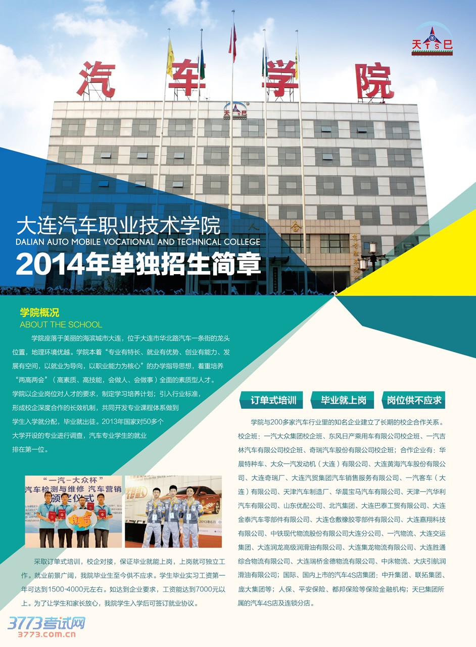 招生简章大连汽车职业技术学院2014年招生简章(单独招生)