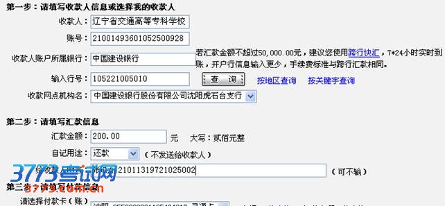 收款人:辽宁省交通高等专科学校