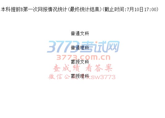 本科提前B第一次网报情况统计(最终统计结果)(截止时间:7月10日17:00)