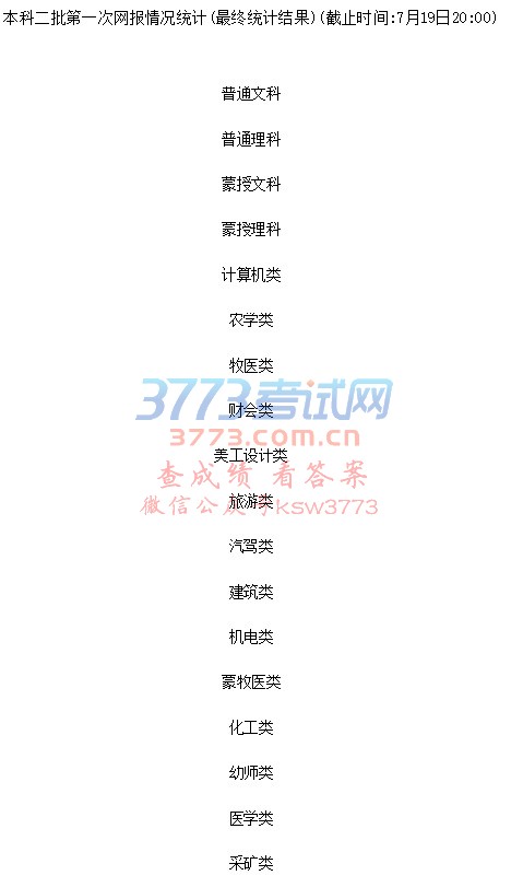 2017内蒙古高考本科二批第一次网报情况统计(最终统计结果)(截止时间:7月19日20:00)