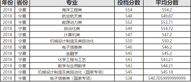 2018哈尔滨工程大学在宁夏录取分数线