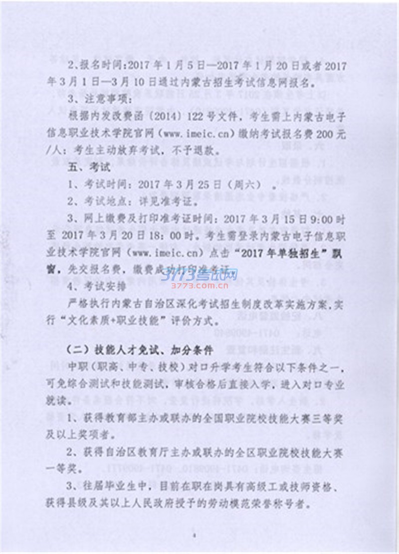 2017内蒙古电子信息职业技术学院单招工作方案