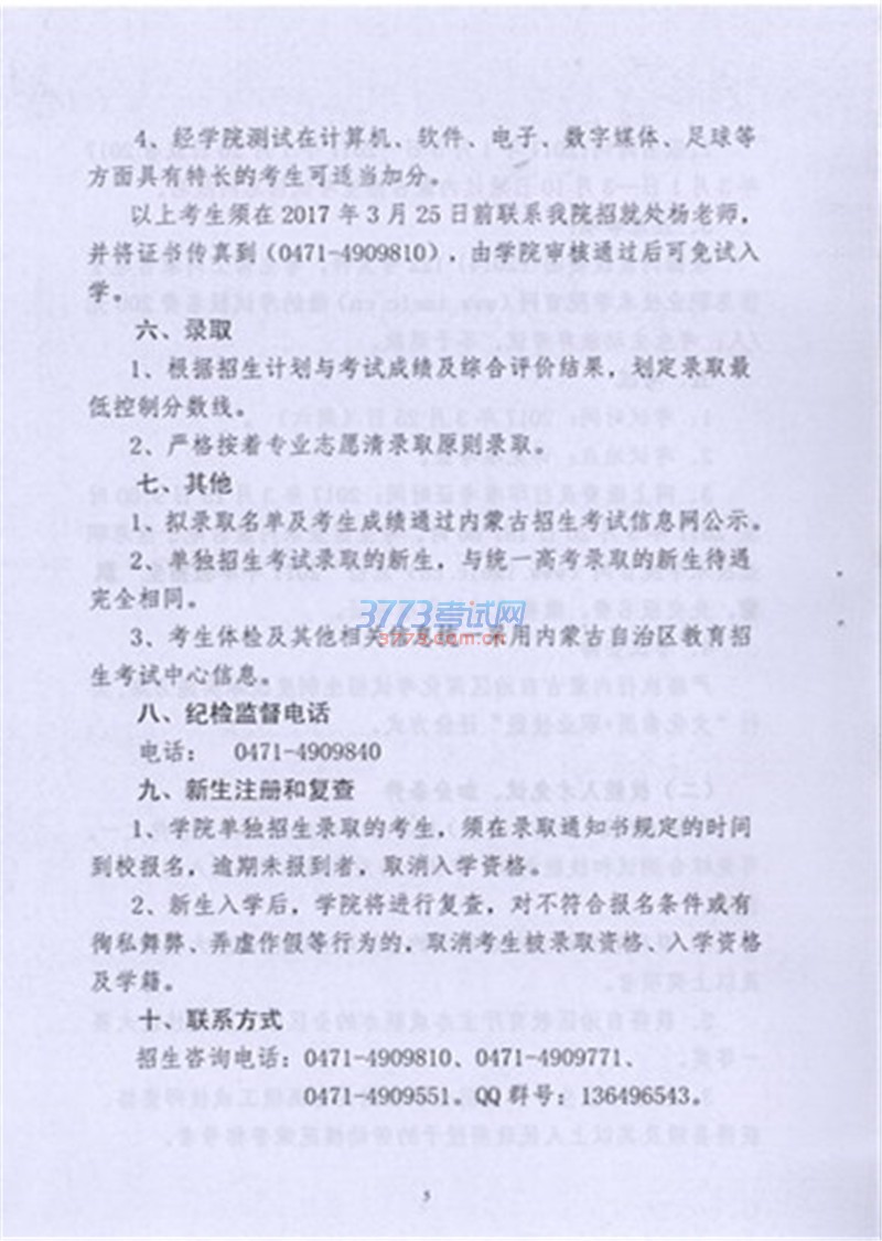 2017鄂尔多斯职业学院单招工作方案