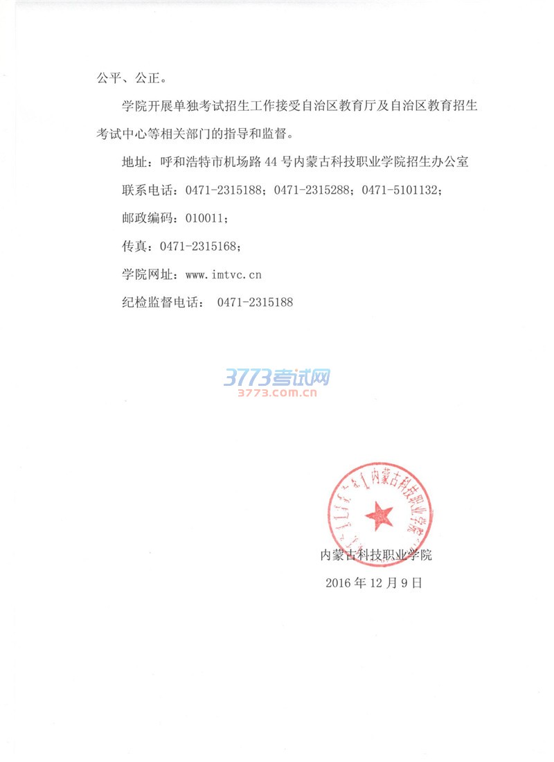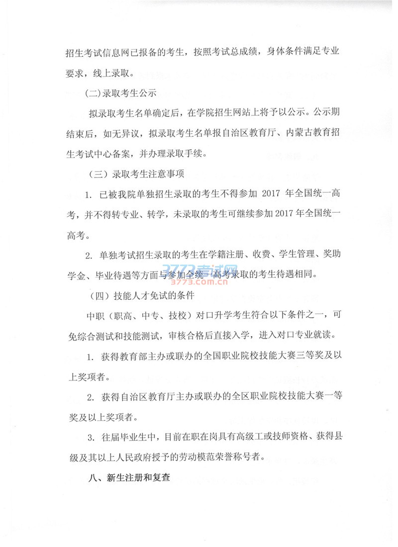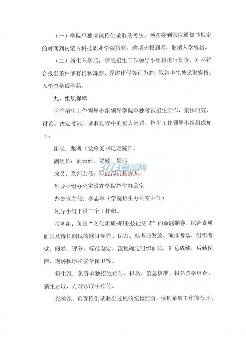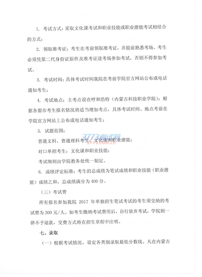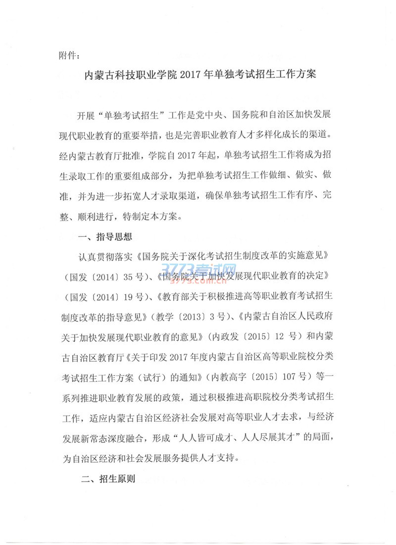 2017内蒙古科技职业学院单招工作方案