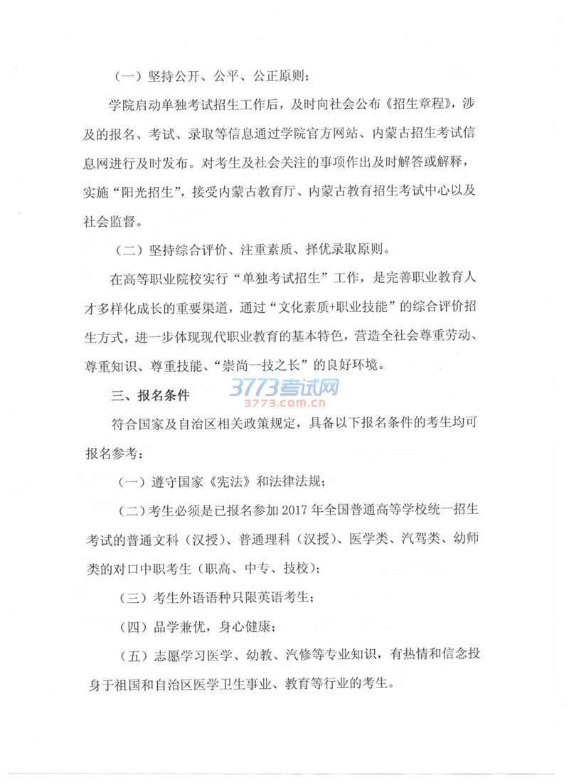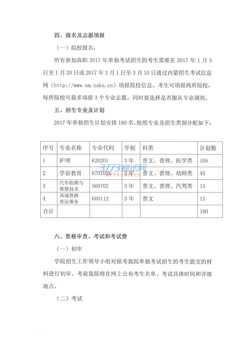 2017鄂尔多斯职业学院单招工作方案