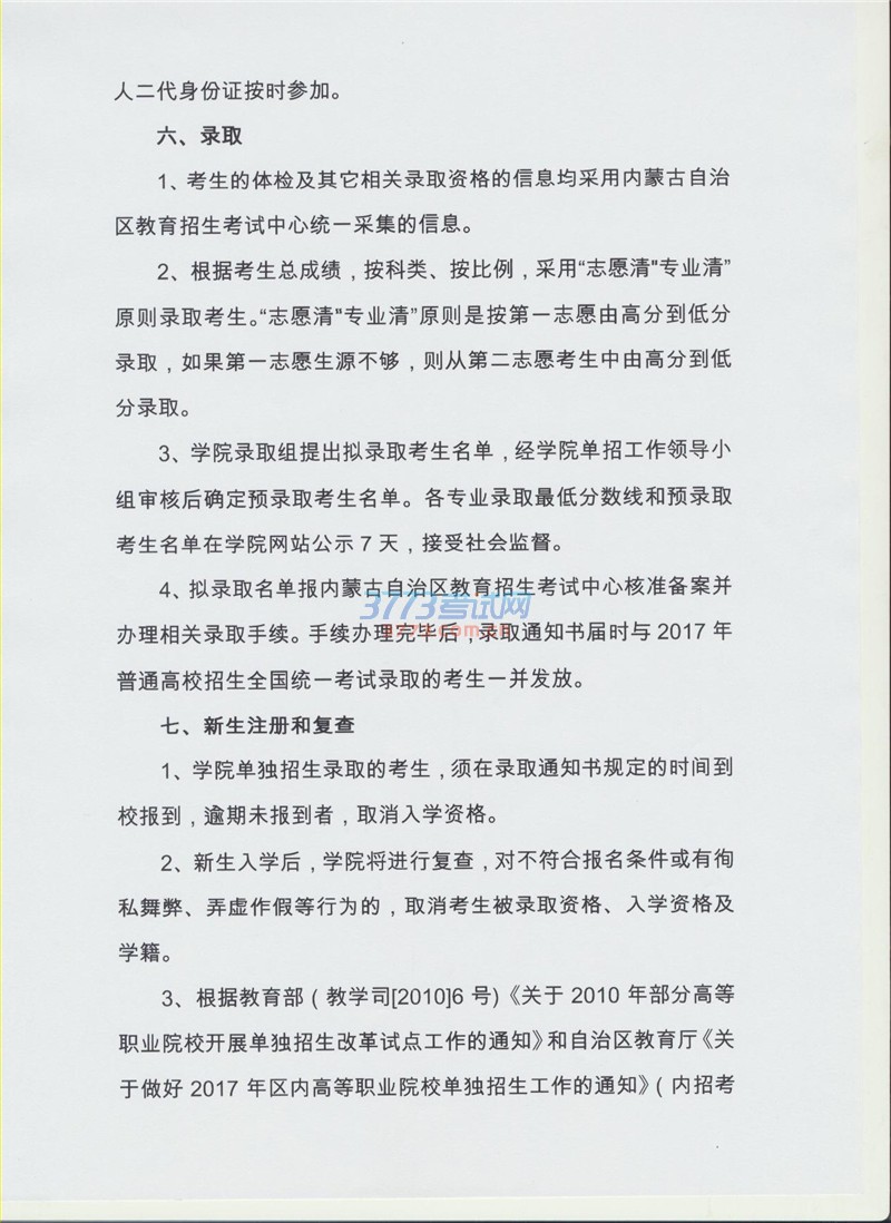 2017内蒙古科技职业学院单招工作方案