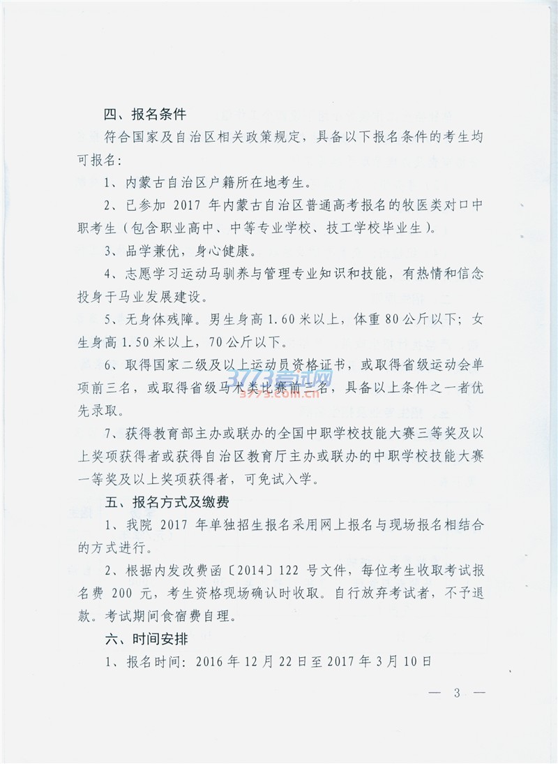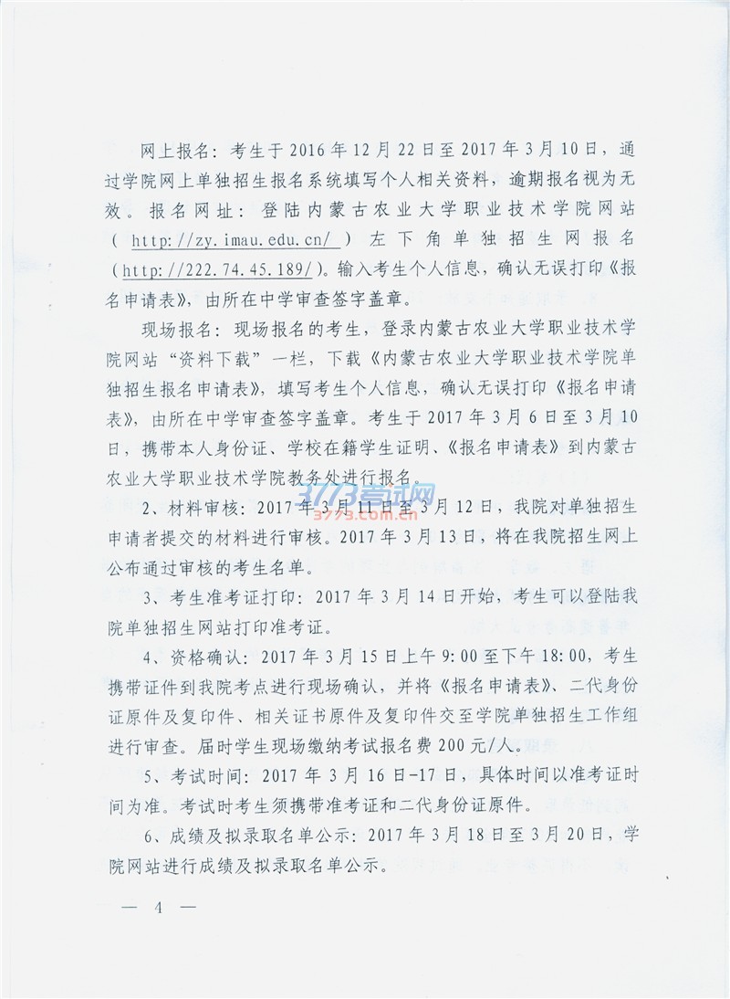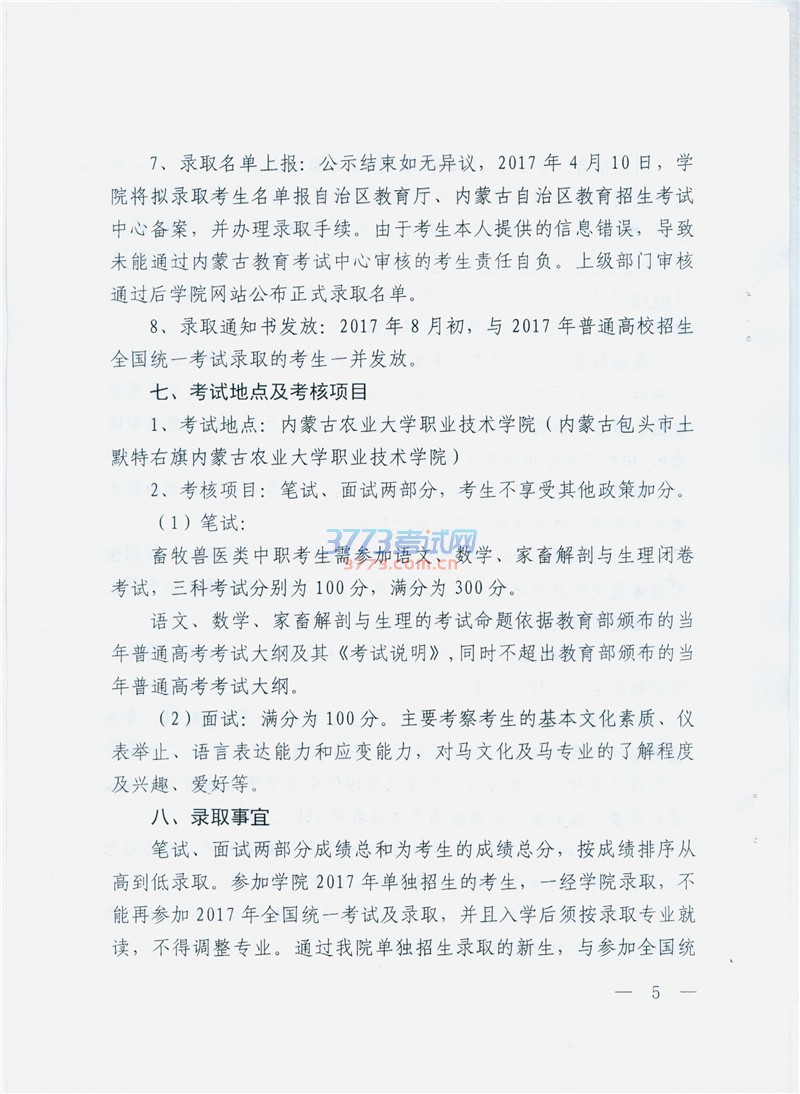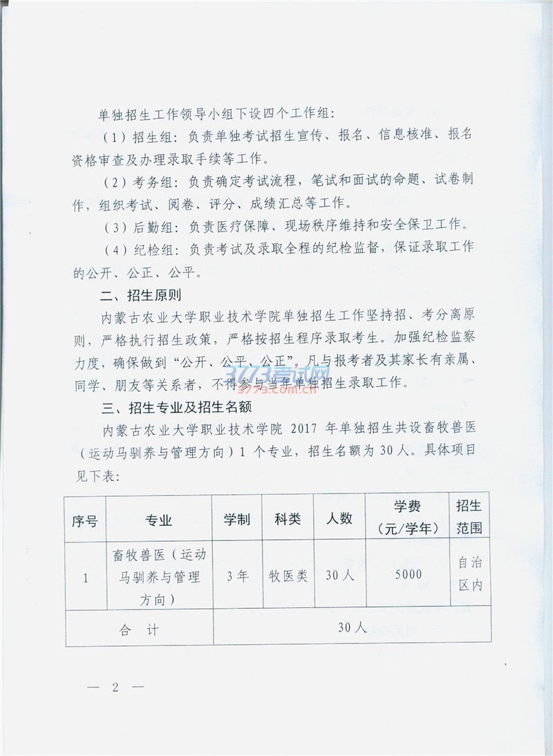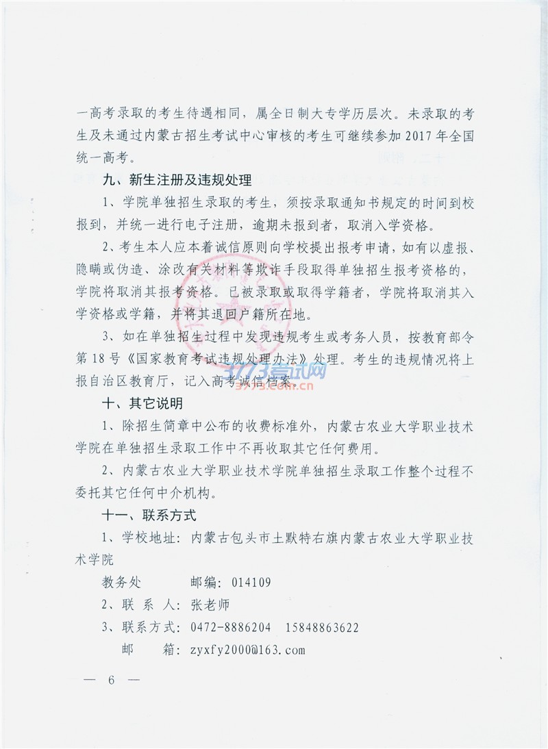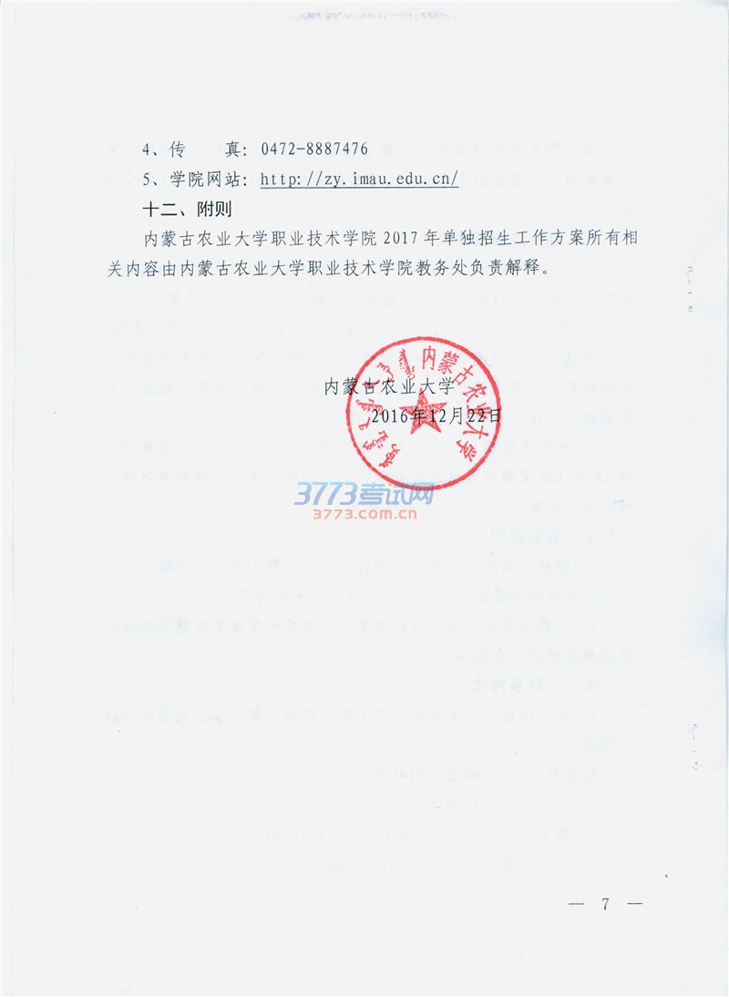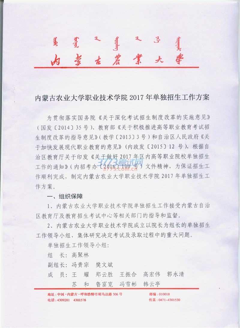 2017年内蒙古农业大学职业技术学院单招工作方案
