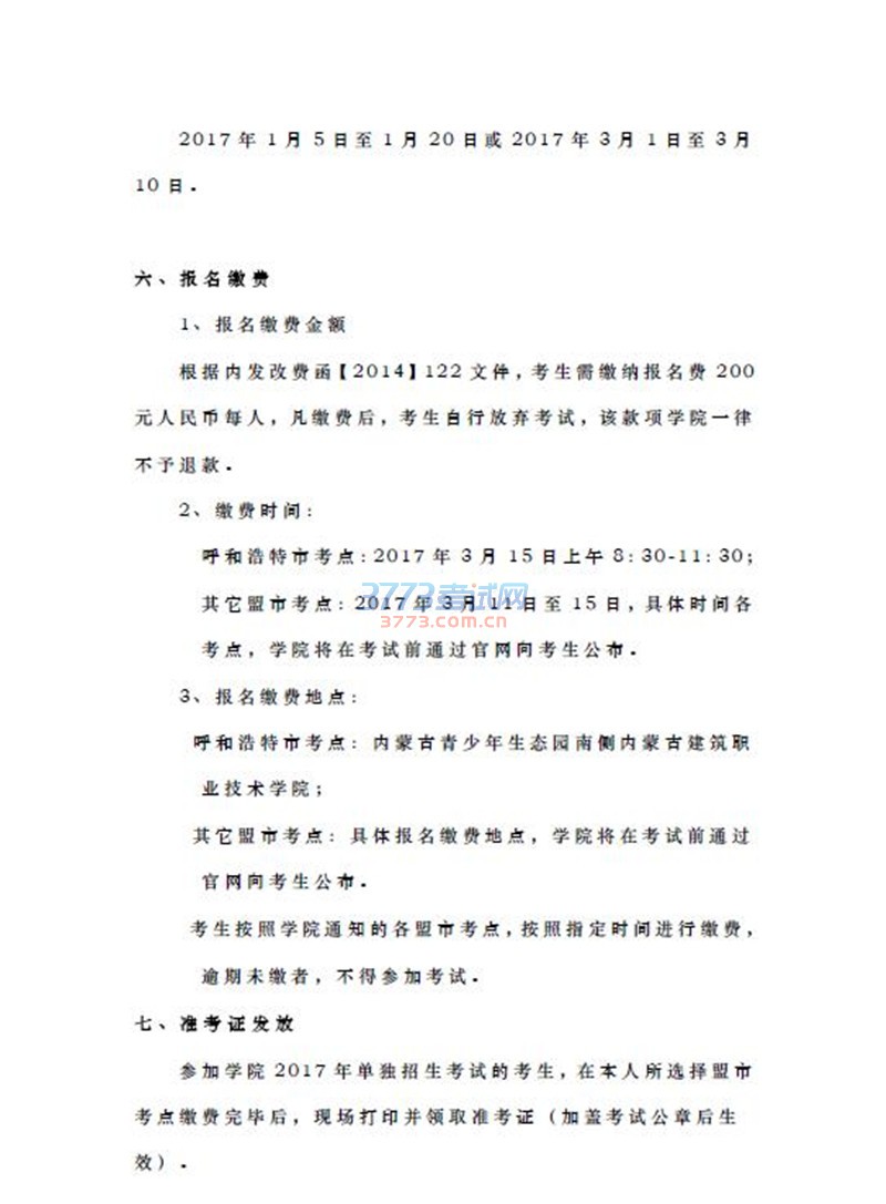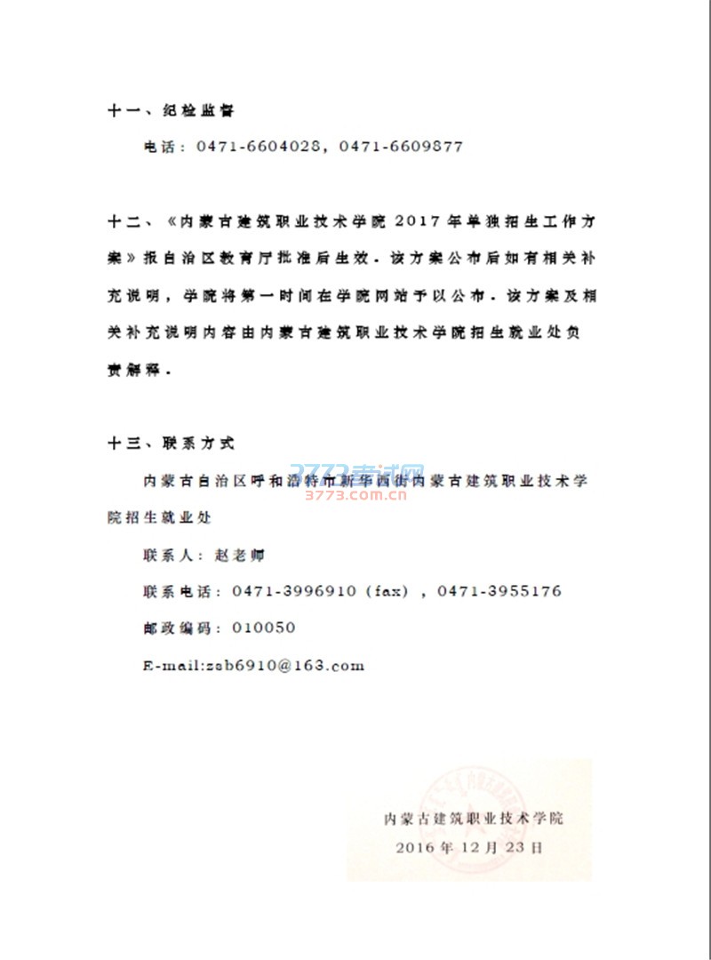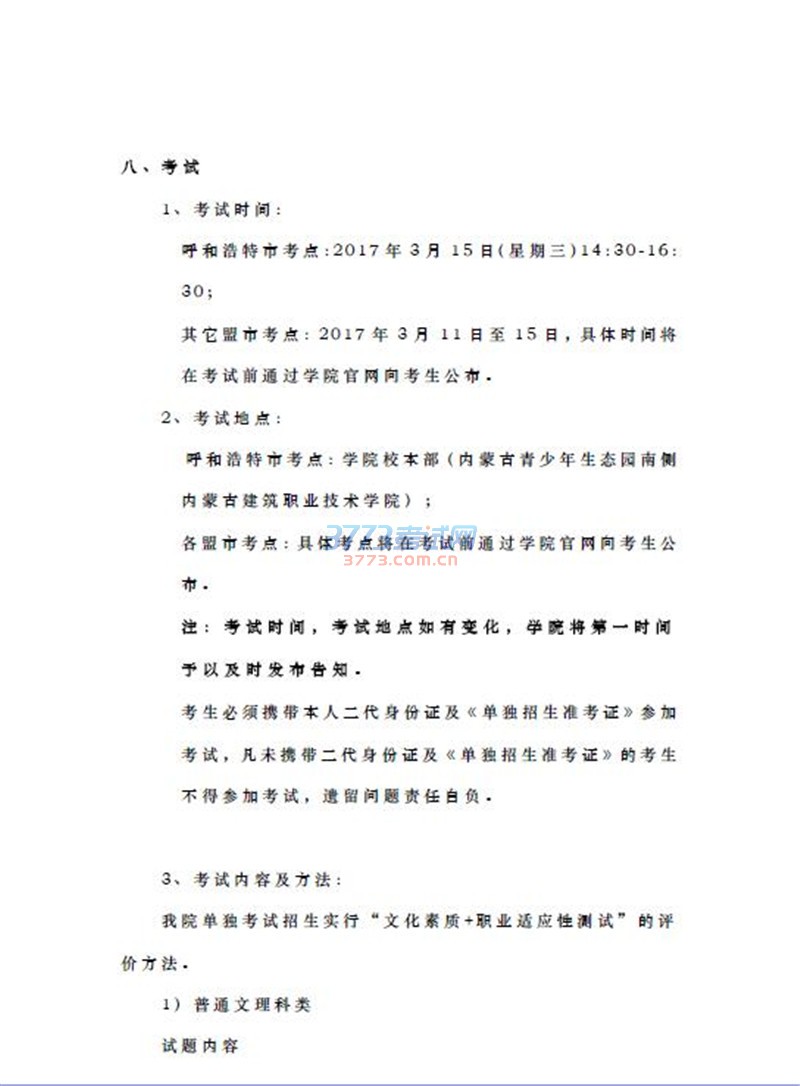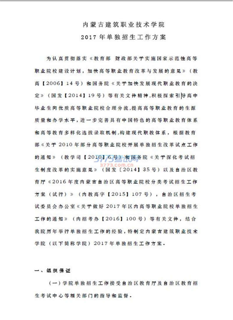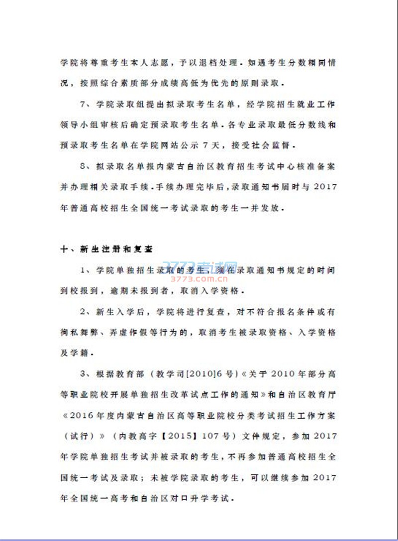 2017鄂尔多斯生态环境职业学院单招工作方案