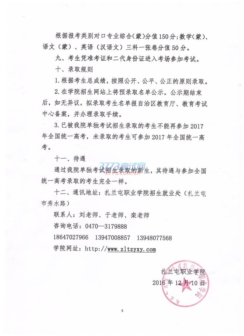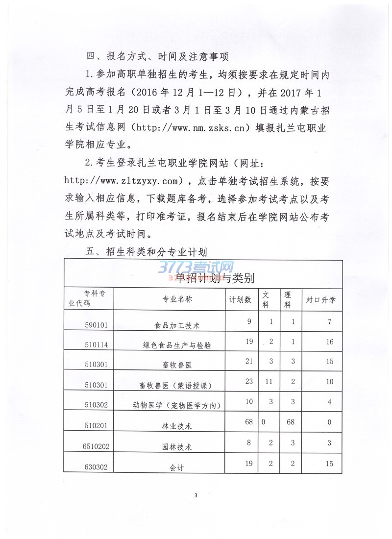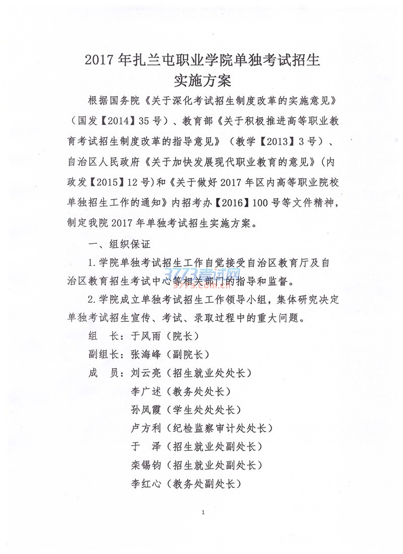 2017鄂尔多斯生态环境职业学院单招工作方案