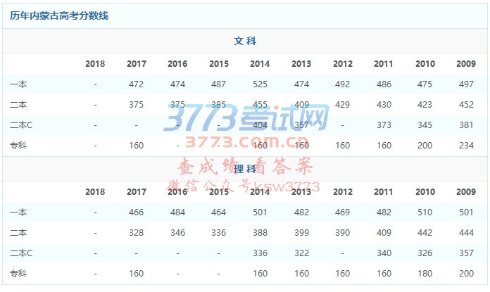 历年内蒙古高考分数线文 科2018201720162015201420132012201120102009