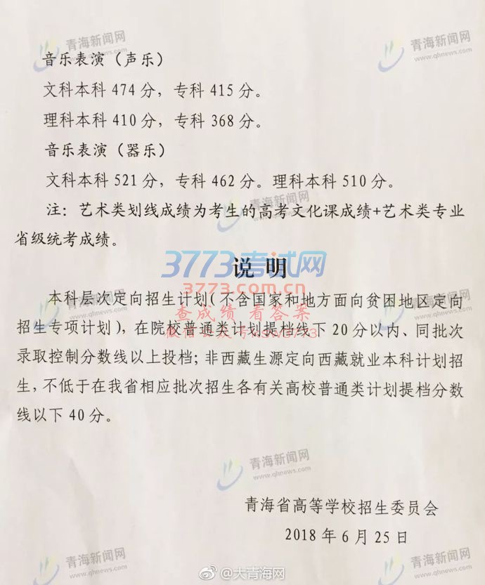 3773考试网 - 高考 - 各省高考分数线 - 青海 - 正文
