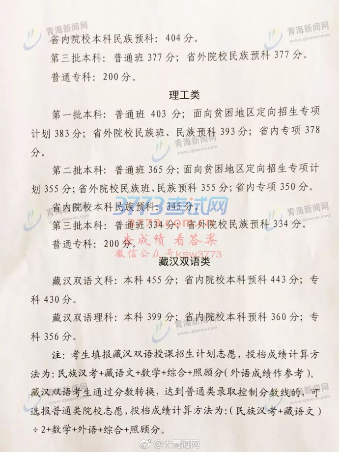 3773考试网 - 高考 - 各省高考分数线 - 青海 - 正文