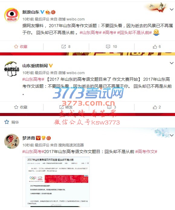 2017年山东高考作文话题:不要回头看,因为逝去的风景已不再属于你。 回头却已不再是从前 。#山东高考# #高考# #回头却不是从前# [摊手]