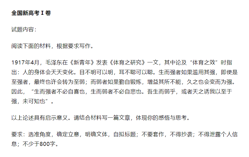2021年全国新高考Ⅰ卷高考语文作文题目