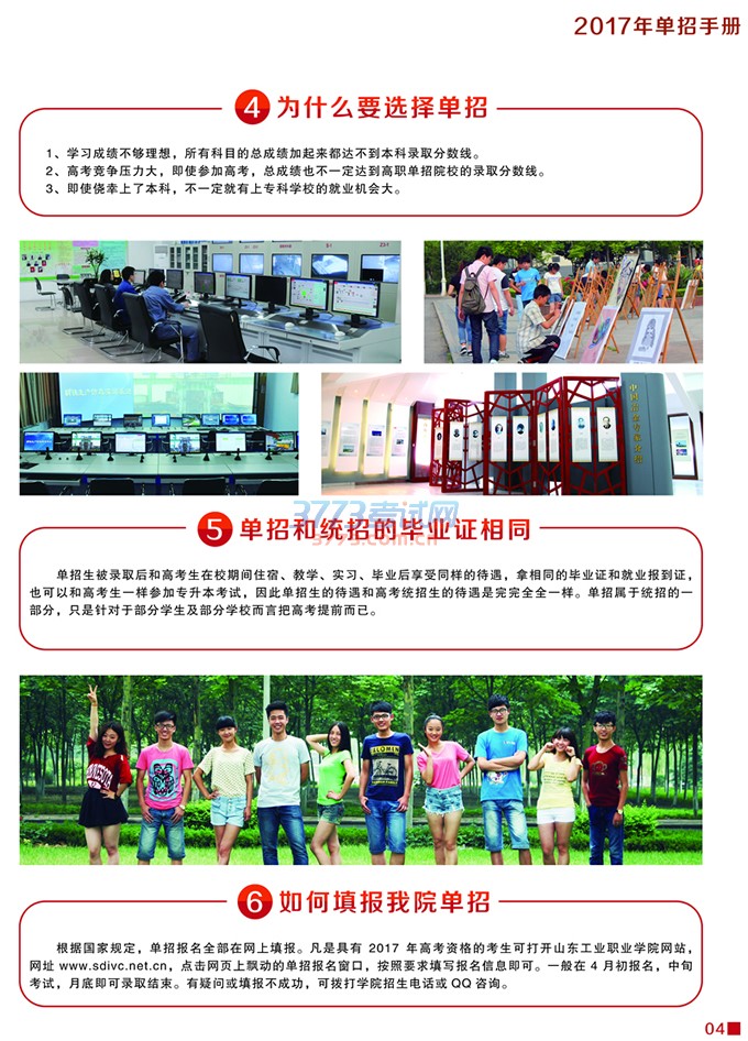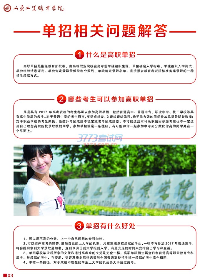山东工业职业学院2017年单独招生手册