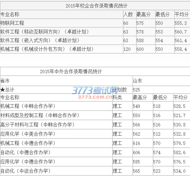 3773考试网 - 高考 - 高校录取分数线 - 山东 - 正文