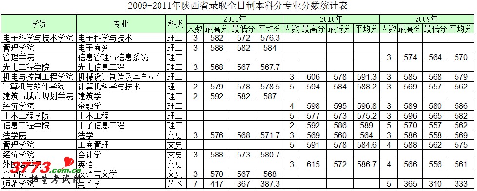 深圳大学2009-2011年内蒙古分专业录取分数线