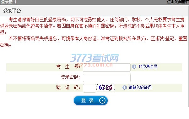 考生请保管好自己的登录密码,切不可泄露给他人。任何部门、学校、个人无权要求考生提供登录密码或代替考生操作。若因自身保管不慎而泄露密码,所造成的不良后果均由考生本人承担。 若不慎将密码丢失或遗忘,可携带本人身份证、准考证到报名所在县(市、区)招办登记、重置密码。