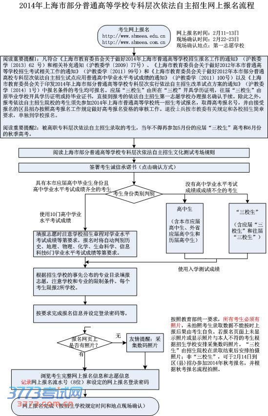 2014年上海市部分普通高等学校专科层次依法自主招生网上报名操作流程图