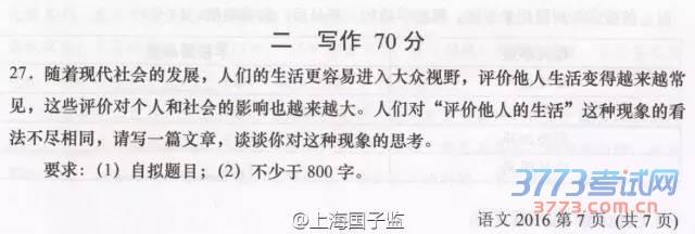 2016上海高考作文题目公布