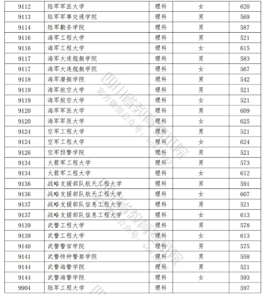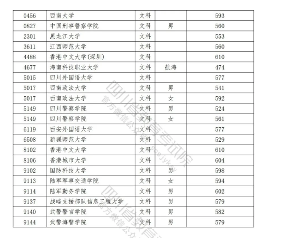 2021年在川招生普通高校本科提前批次录取调档线公布