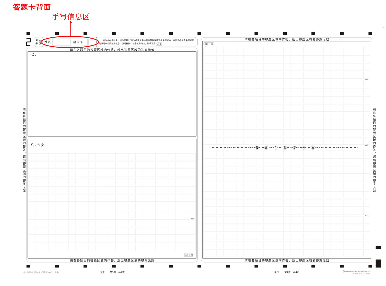 一、答题卡格式