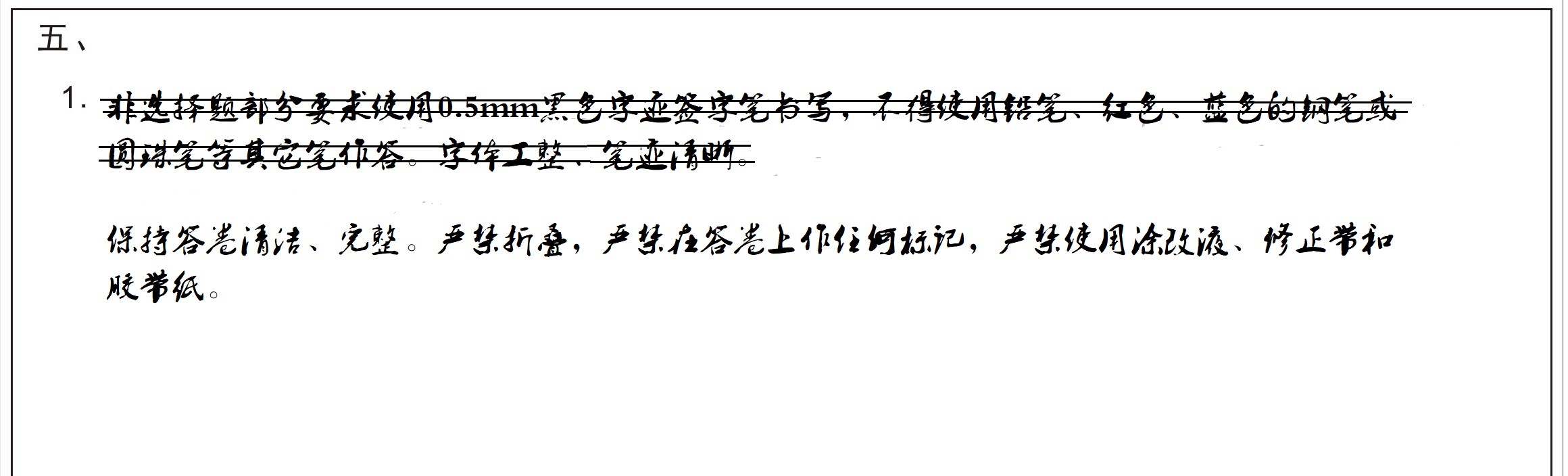 ①请不要用铅笔或圆珠笔作答,否则扫描图片不清楚,影响阅卷: