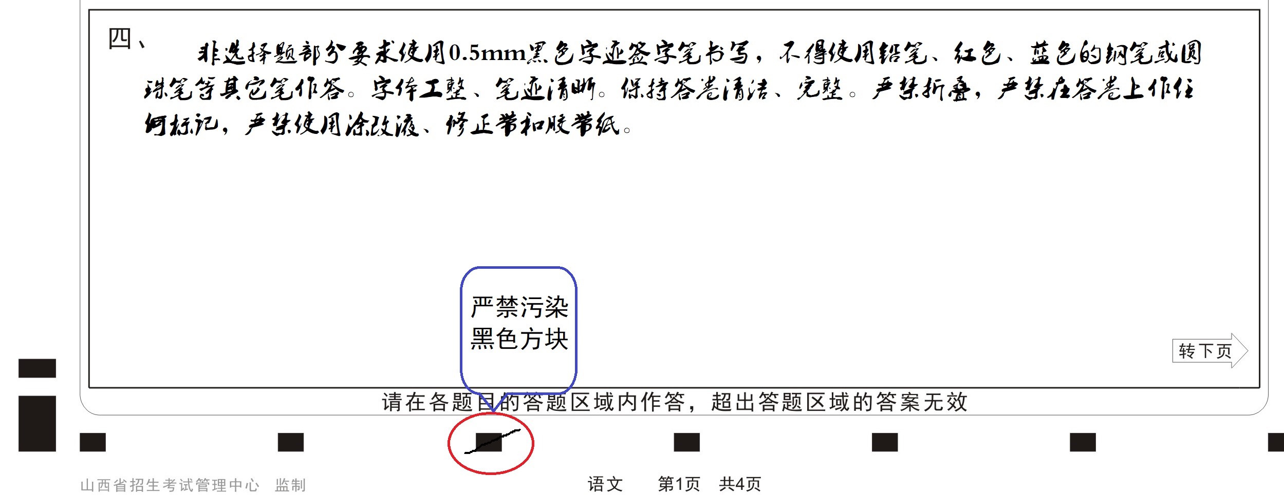高速扫描仪是通过图像定位点确认答题卡的方向与位置,考生严禁在图像定位点位置随意涂写。