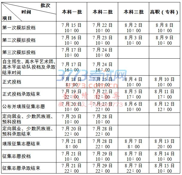 3.本科一批、本科二批、本科三批、高职(专科)日程如下表: