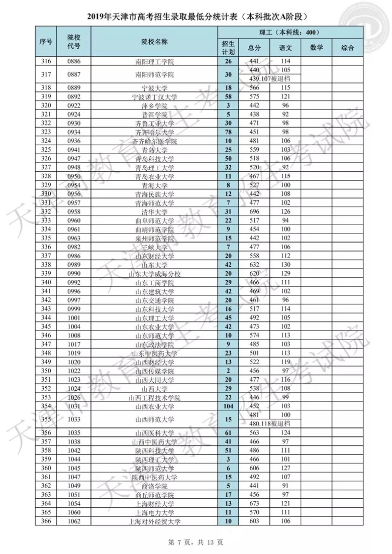 来源:天津市教育招生考试院 [2019-7-19] [微信公众号查成绩:]