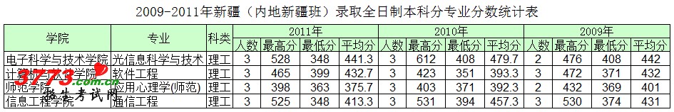 深圳大学2009-2011年内地新疆班分专业录取分数线