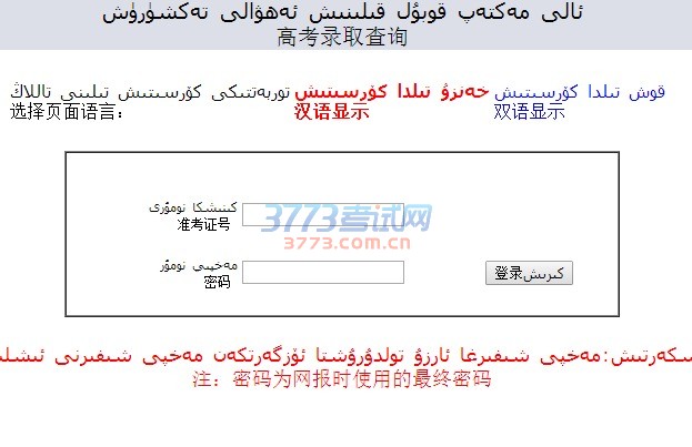 2016年新疆维吾尔自治区普通高考录取查询系统(电信网入口)